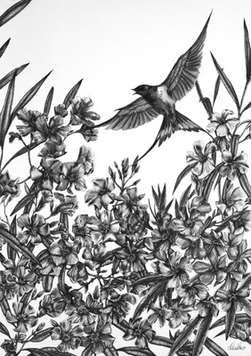 Mit viel Geduld und Hingabe entstehen sowohl farbenreiche Werke als auch reduzierte schwarz-weiße Zeichnungen. Beide erzählen von Artenvielfalt, Verletzlichkeit und der Sehnsucht nach Ruhe – und laden dazu ein, hinzusehen und durchzuatmen. Die Natur ist für sie dabei weit mehr als nur ein Motiv: Sie ist eine unerschöpfliche Inspirationsquelle – eine Welt voller Farben, Muster und Formen, die sie mit zeichnerischer Neugier erkundet.